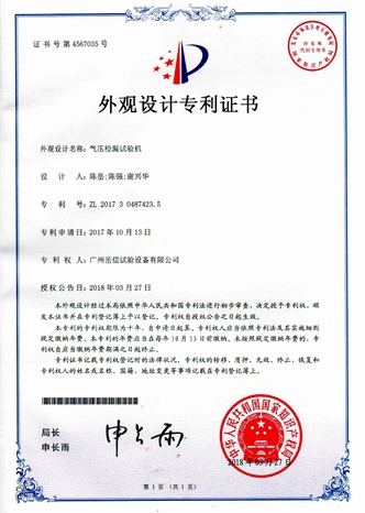 氣壓檢漏試驗(yàn)機(jī)-外觀專利證書【岳信公司】